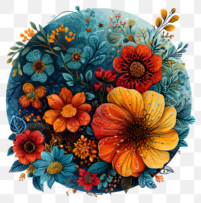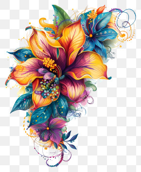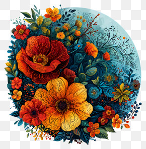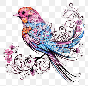 . The resolution of this PNG file is 4096 x 4096 pixels and it has a file size of 10.51 MB.A digital illustration of a bird, specifically a phoenix, perched on a branch. The bird is facing towards the right side of the image, with its head turned slightly to the left. It has a bright orange head with a blue beak and a yellow body. The body of the bird is covered in a vibrant orange and blue plumage, with a long, flowing tail that is made up of white and pink flowers and leaves. The tail feathers are spread out in a fan-like pattern, creating a sense of movement and energy.