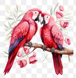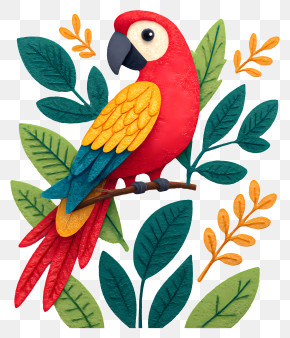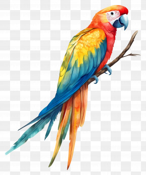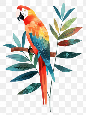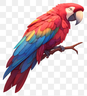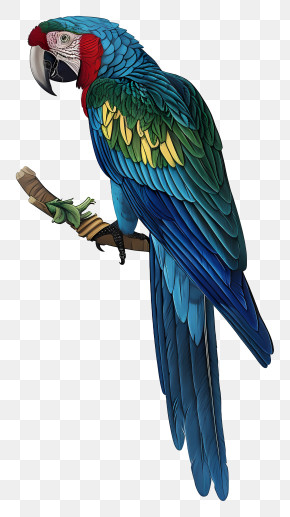 . The resolution of this PNG file is 2296 x 3748 pixels and it has a file size of 3.59 MB.A digital illustration of a parrot perched on a tree branch. The parrot is a Scarlet Macaw, also known as a Macaw. It has a bright red body with blue and green feathers on its wings and tail. Its beak is yellow and its eyes are black. The branch it is perched on is brown and appears to be made of wood.