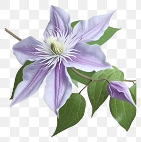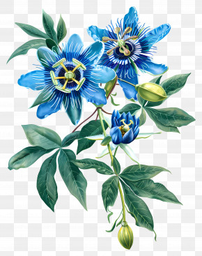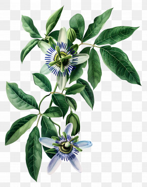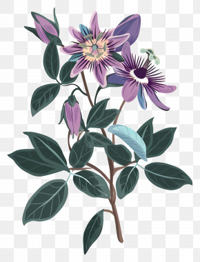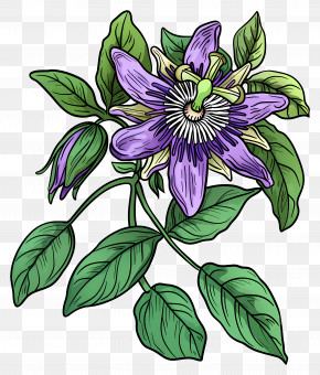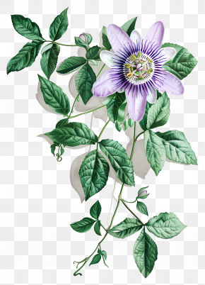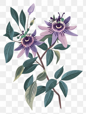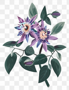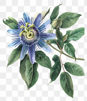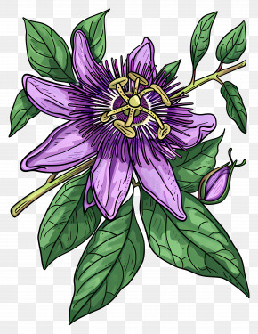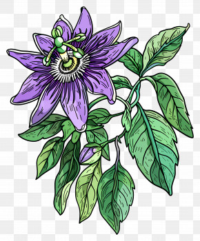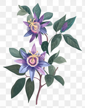 Blooming Flower - Purple Passionflower With Green Leaves PNG