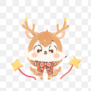 A digital illustration of a deer with large antlers. The deer is standing on all fours and is facing towards the right side of the image. It has a light brown coat with white spots on its body and legs. Its head is turned slightly to the left and its eyes are looking directly at the viewer. The antlers are large and pointed, with a darker brown color on the top and a lighter brown on the bottom.