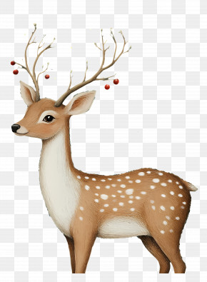 . The resolution of this PNG file is 3800 x 3920 pixels and it has a file size of 6.69 MB.A digital illustration of a deer with large antlers. The deer is standing on all fours and is facing towards the right side of the image. It has a light brown coat with white spots on its body and legs. Its head is turned slightly to the left and its eyes are looking directly at the viewer. The antlers are large and pointed, with a darker brown color on the top and a lighter brown on the bottom.