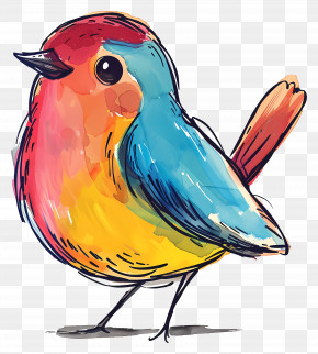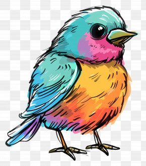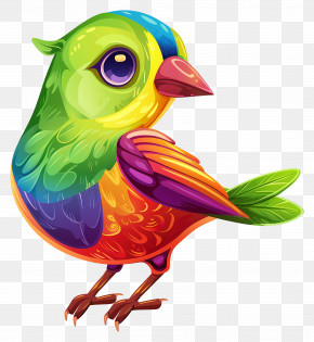 Cartoon Bird - Artistic And Vivid Multicolored Bird PNG