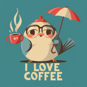 A digital illustration of a colorful bird. The bird is standing on two legs and is facing towards the right side of the image. It has a round head with big, round eyes and a small beak. The body of the bird is covered in a rainbow of colors, including blue, green, yellow, pink, orange, and purple. The wings are spread out behind the bird, and it has a pink and blue feather on its head. The overall style of the illustration is playful and whimsical.