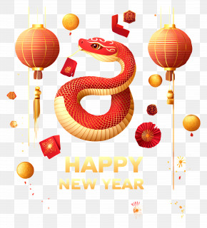 Chinese New Year - Red Snake With Lanterns PNG