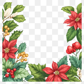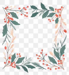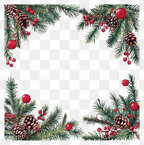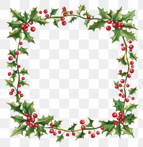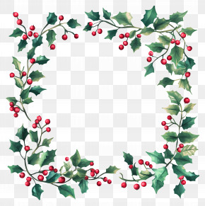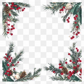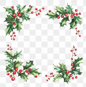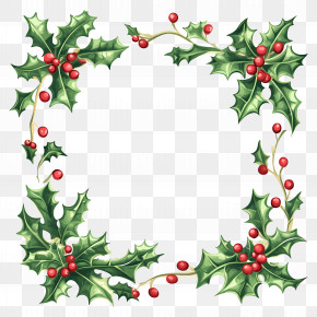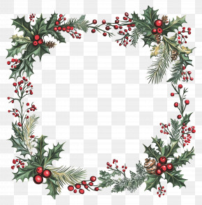 . The resolution of this PNG file is 4320 x 4336 pixels and it has a file size of 13.81 MB.A square frame made up of holly leaves, pine cones, and red berries. The leaves are arranged in a way that they form a border around the edges of the frame. In the center, there is a small bird with a red beak and a yellow body, perched on a branch. The bird is facing towards the right side of the image. The overall design is festive and cheerful, perfect for the holiday season.