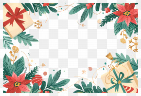 Christmas Border - Festive Christmas Frame With Bird And Greenery PNG