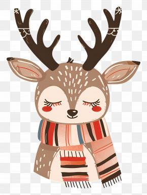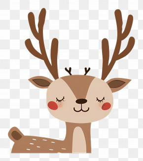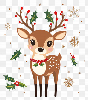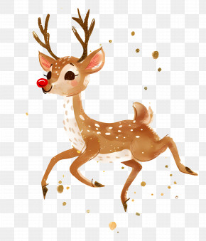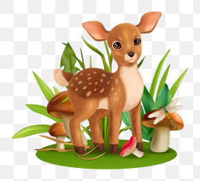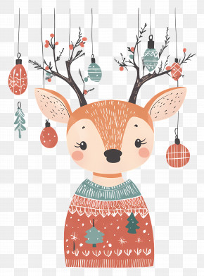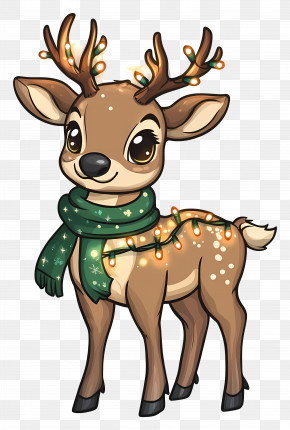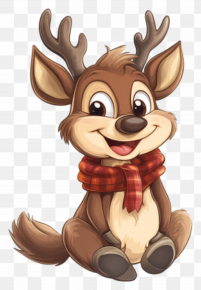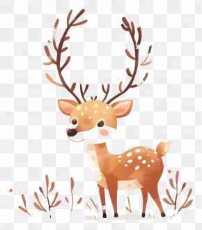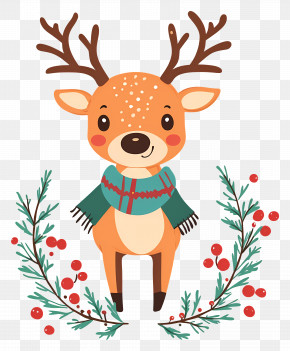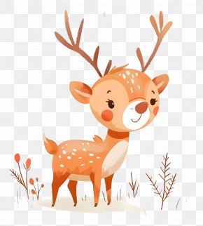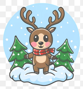 Christmas Deer - Cute Cartoon Deer In A Forest Scene PNG