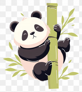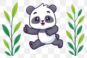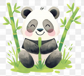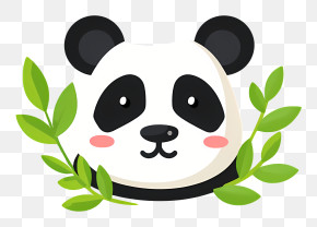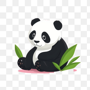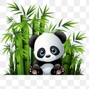 An illustration of a panda bear sitting on a bed of green leaves. The panda is holding a bamboo stick in its paws and appears to be eating it. The leaves around it are green and appear to be bamboo plants. The overall style of the illustration is cartoon-like and playful.