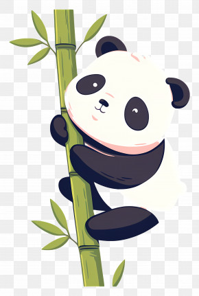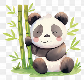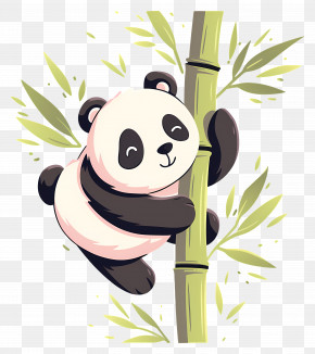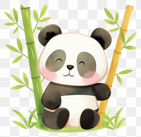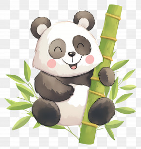 Cute Panda - Cute Cartoon Panda Eating Bamboo PNG