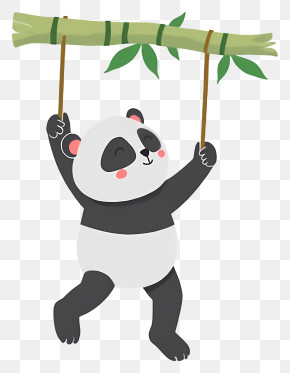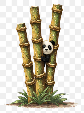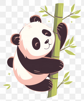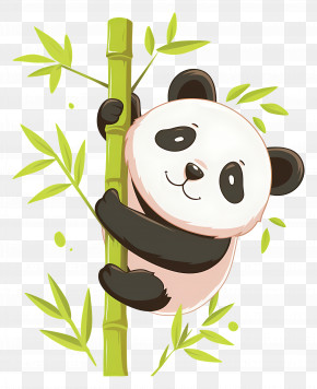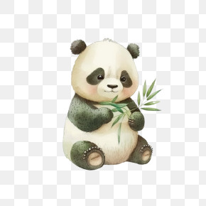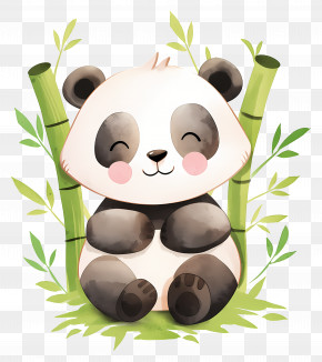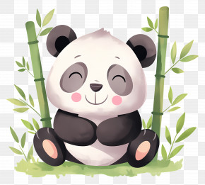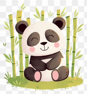 . The resolution of this PNG file is 3972 x 3888 pixels and it has a file size of 7.23 MB.An illustration of a panda bear sitting on a bed of green leaves. The panda is holding a bamboo stick in its paws and appears to be eating it. The leaves around it are green and appear to be bamboo plants. The overall style of the illustration is cartoon-like and playful.