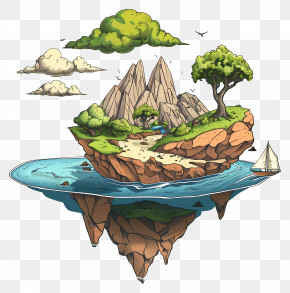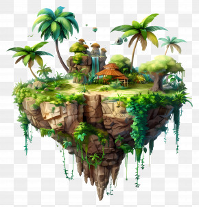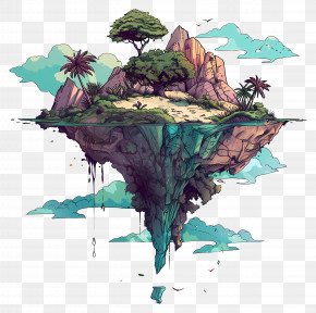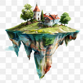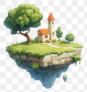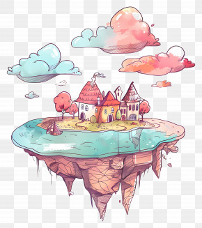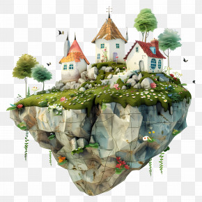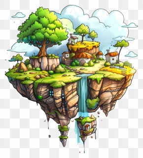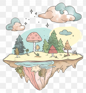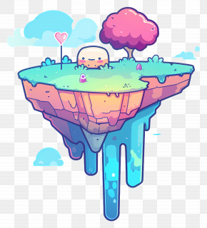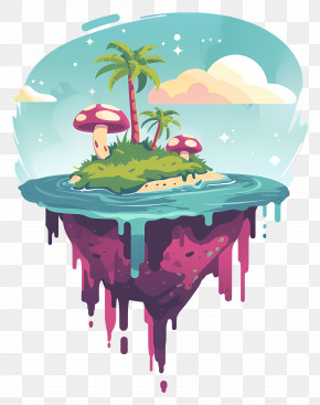 . The resolution of this PNG file is 3672 x 3940 pixels and it has a file size of 8.79 MB.An illustration of a small island with a variety of colorful mushrooms and plants. The island is covered in green grass and has a small stream running through it. There are several large mushrooms of different sizes and colors, including pink, blue, green, yellow, and orange. Some of the mushrooms have pink caps, while others have white caps. There is also a small house with a red roof and a chimney. The sky is blue with white clouds and there are pink and green flowers scattered throughout the island. The overall theme of the image is whimsical and playful.