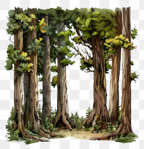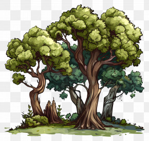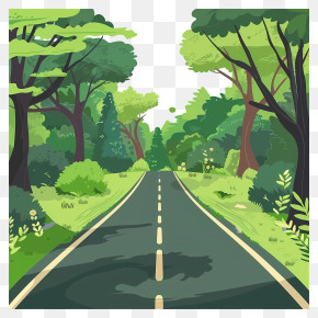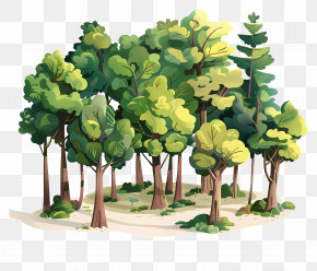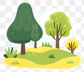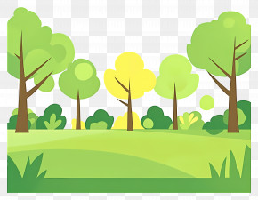 Forest Landscape - Cartoon Green Landscape With Trees And Flowers PNG