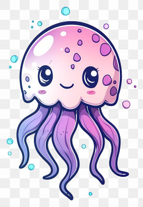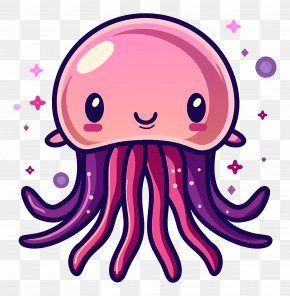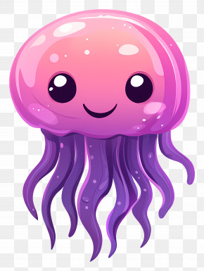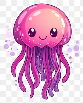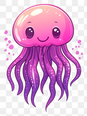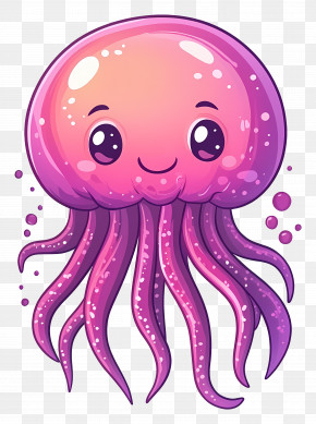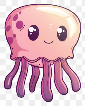 Jelly Fish - Cute Pink Jellyfish Cartoon PNG