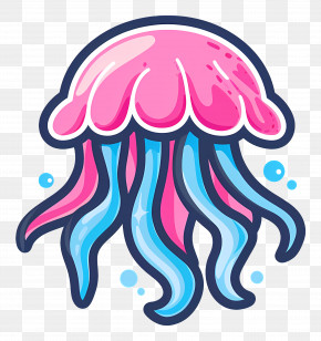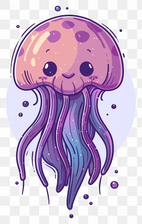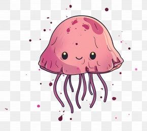 . The resolution of this PNG file is 3160 x 3096 pixels and it has a file size of 1.62 MB.A digital illustration of a pink jellyfish. The jellyfish has a round body with a pink cap that is covered in small pink dots. It has two small round eyes and a small smiley face in the center. The tentacles of the jellyfish are long and thin, and they are pink in color. The overall style of the illustration is cute and cartoon-like.