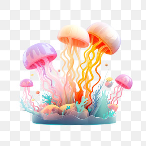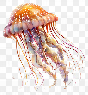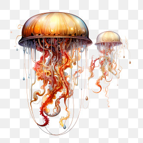 . The resolution of this PNG file is 2048 x 2048 pixels and it has a file size of 1.43 MB.A digital illustration of a jellyfish. The jellyfish has a round body with a yellowish-orange color and long, flowing tentacles. The tentacles are orange and pink in color and are spread out in a fan-like shape. The body of the jellyfish appears to be elongated and has a smooth texture.