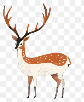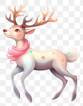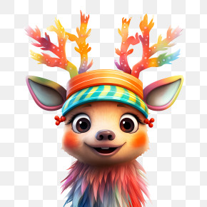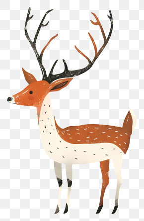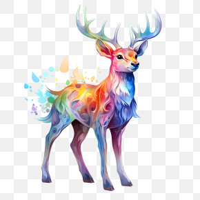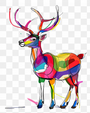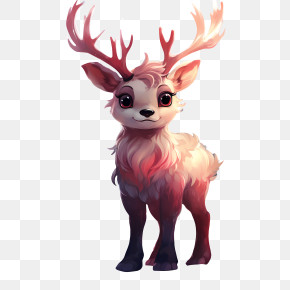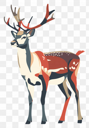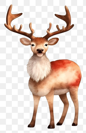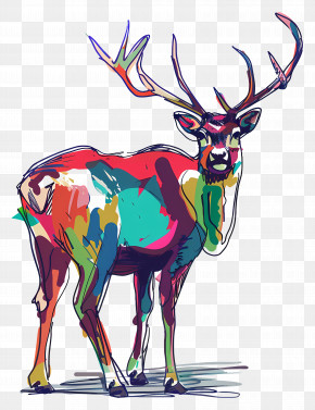 . The resolution of this PNG file is 3160 x 3828 pixels and it has a file size of 2.07 MB.A digital illustration of a deer with large antlers. The deer is facing towards the left side of the image and its head is turned slightly to the right. It has a red body with white spots on its face and neck. The antlers are long and pointed, with blue and red tips. The overall style of the illustration is cartoon-like and playful.