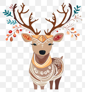 Reindeer - Stylized Deer With Majestic Antlers PNG